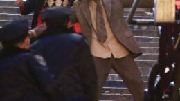 The Joker and Harley Quinn returned to the steps of the Joker’s famous dancing descent to cut a rug their the set of Joker: Folie…