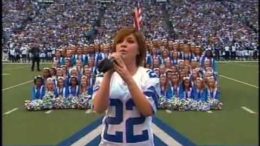 Kelly Clarkson is shamelessly imitating Whitney (soon, soon, I promise) in this performance of our national anthem, but I still like her because she looks…