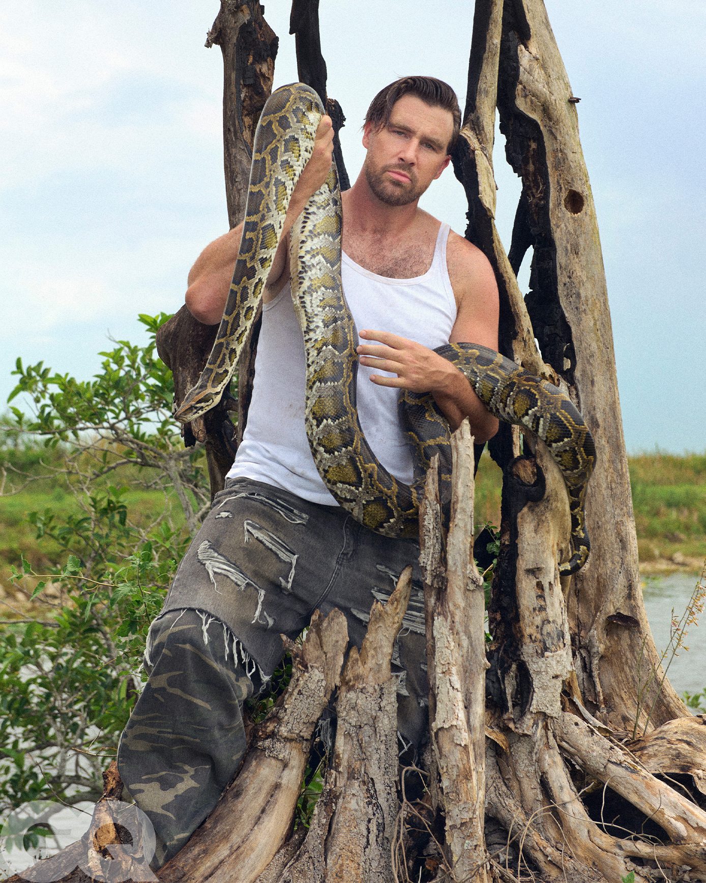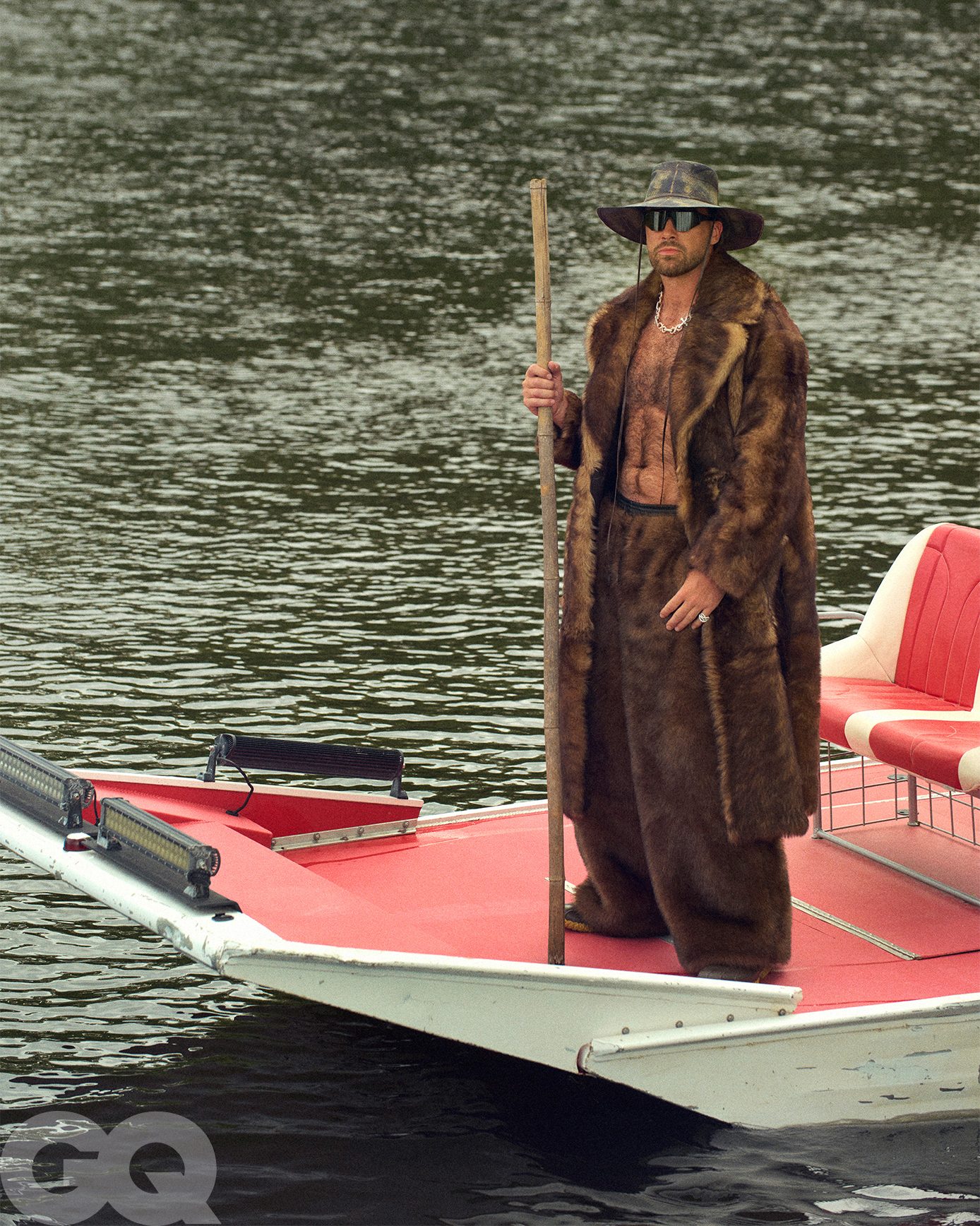 Whoever styled Travis Kelce‘s new GQ photoshoot (probably someone from Taylor’s team we’re assuming) has a Pinterest board chalked full of Lana Del Rey‘s exes, Jan 6th insurrectionists, and backwoods rough trade (Yes, all three of those things are the same and yes – even then – the outcome is somehow still the dollar-bin version of each of these)